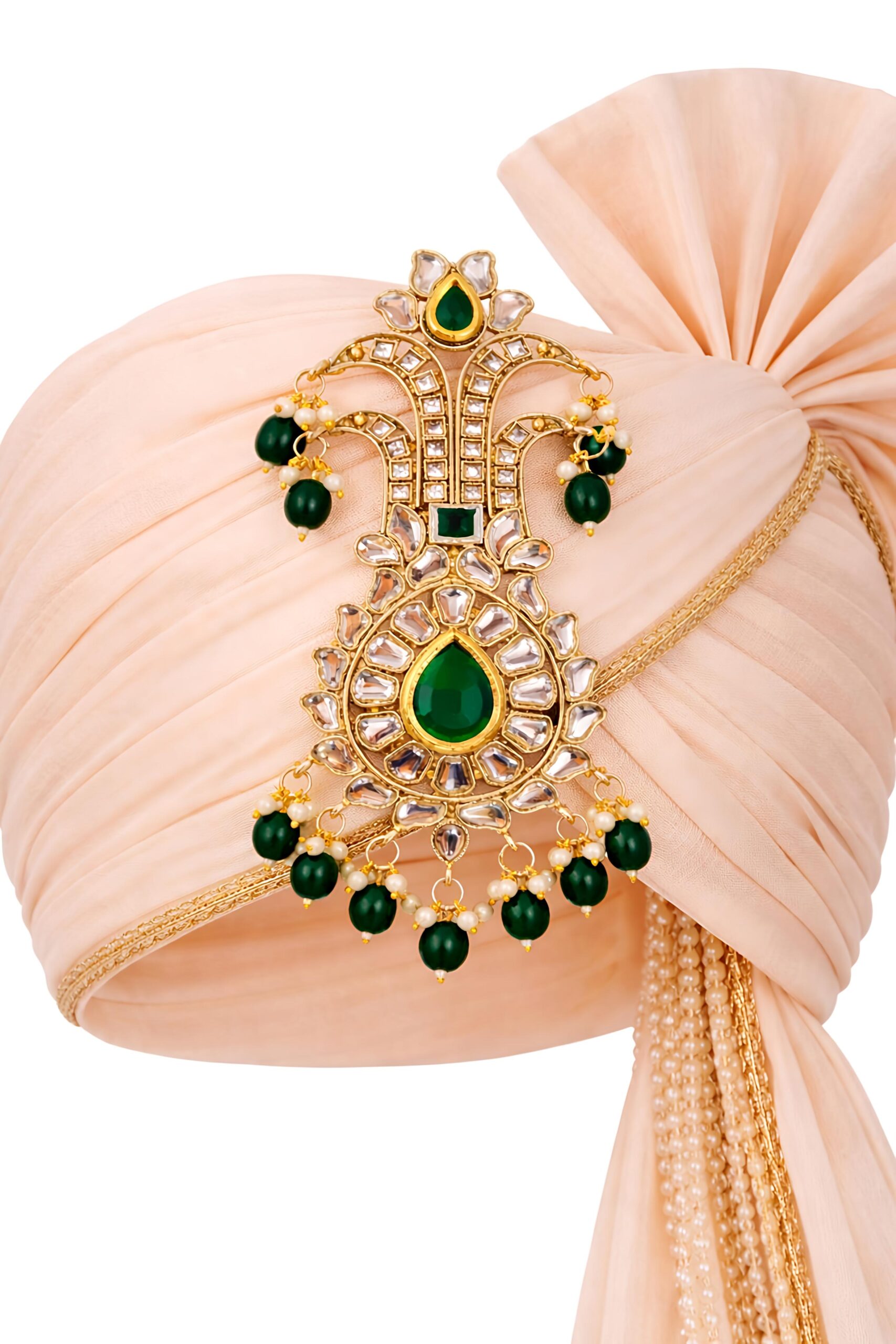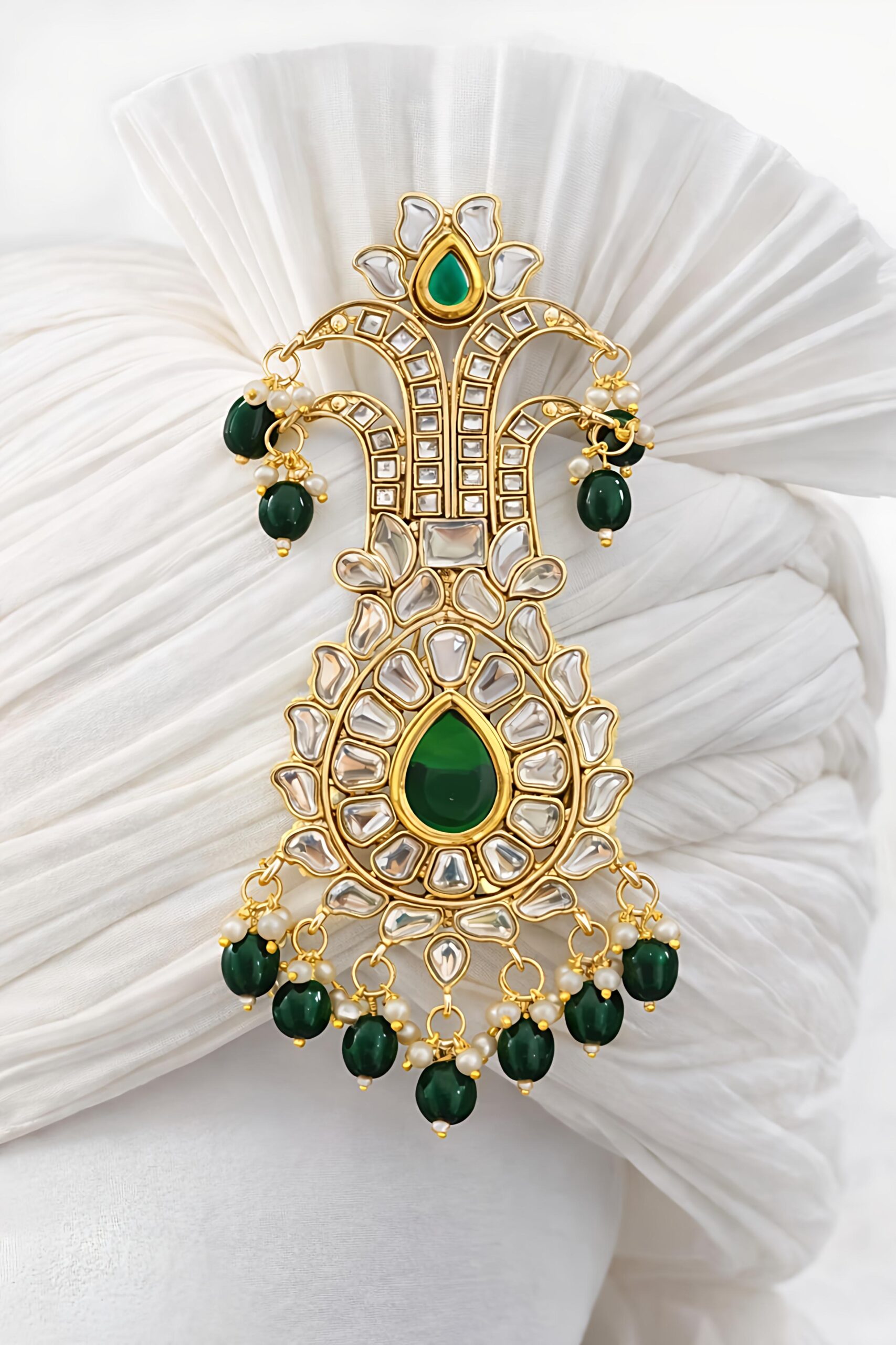 Premium Green Kundan Dulha Sehra Kalangi with Pearls | Royal Groom Wedding Brooch for Baraat & Shaadi