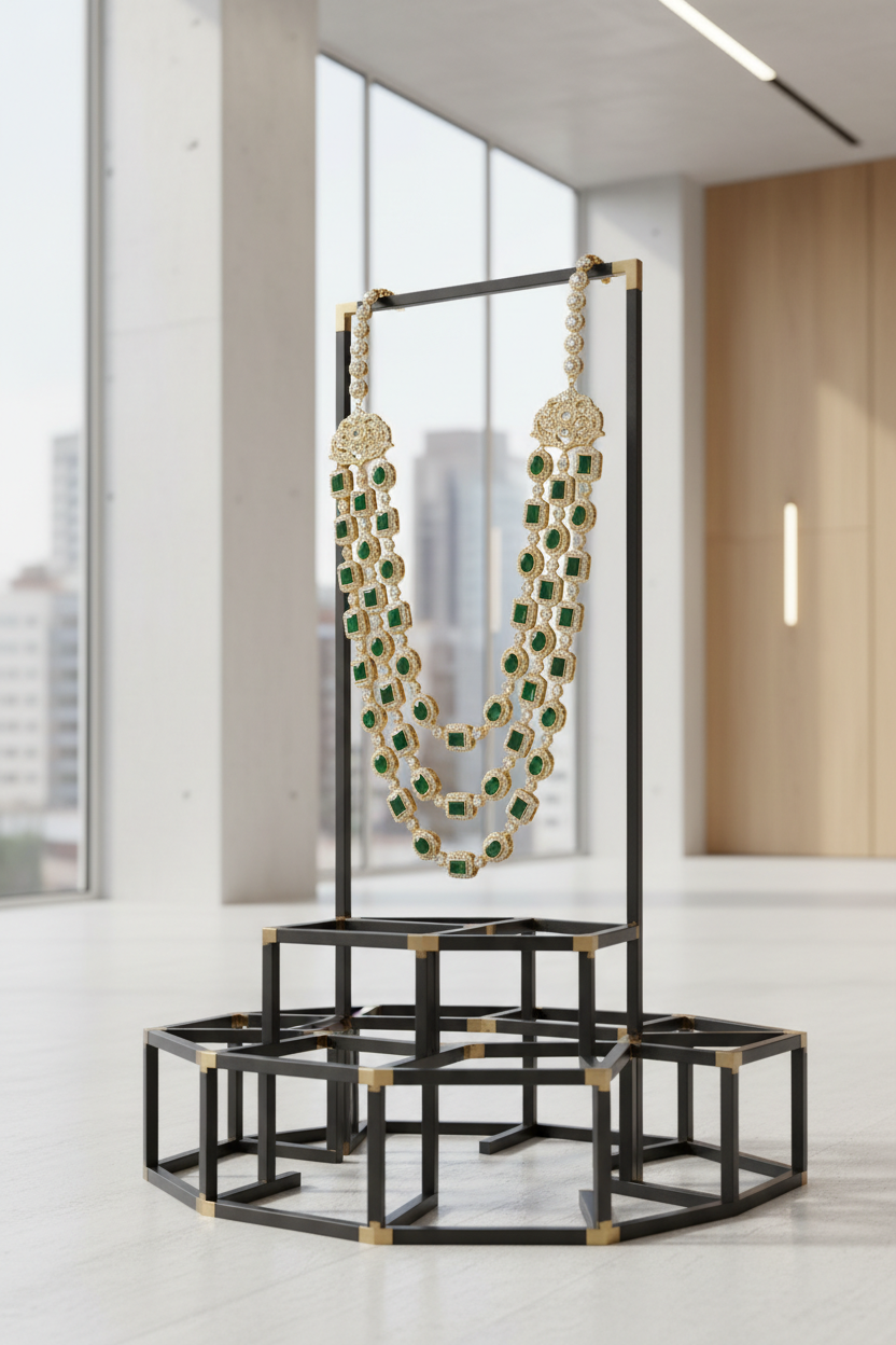 Its long layered design beautifully complements sherwani, achkan, and wedding outfits, making it a perfect accessory for weddings, engagements, and royal ceremonies. Crafted with fine detailing, this mala reflects timeless traditional craftsmanship with a luxurious finish.