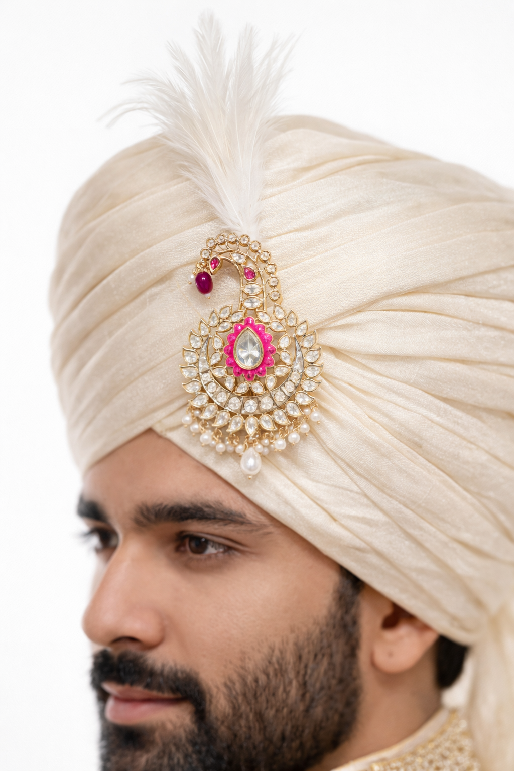 Ideal for groom sherwani, safa, pagdi, or turban—enhances your complete wedding outfit instantly.