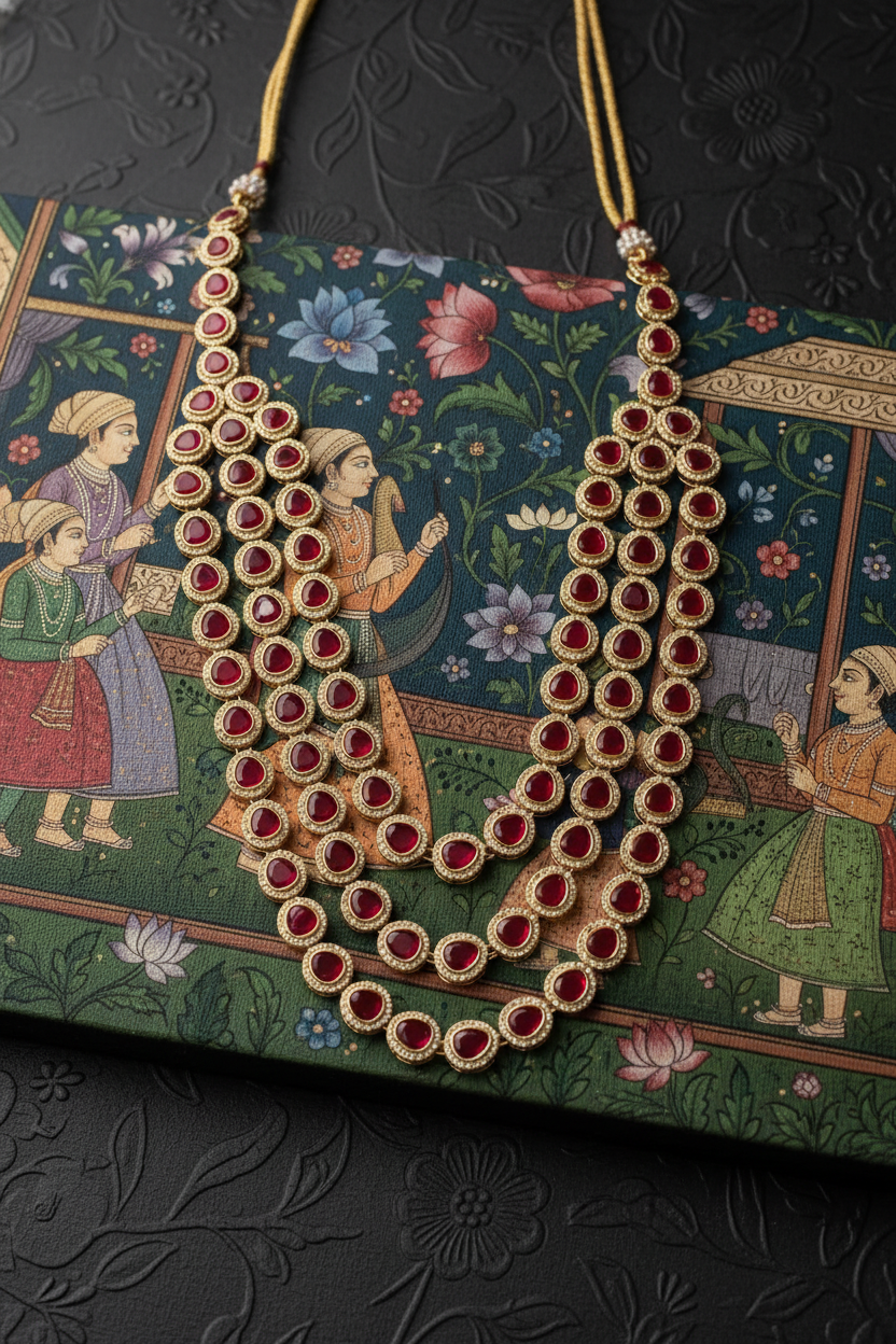 Royal Ruby Red Layered Groom Mala Necklace for Men