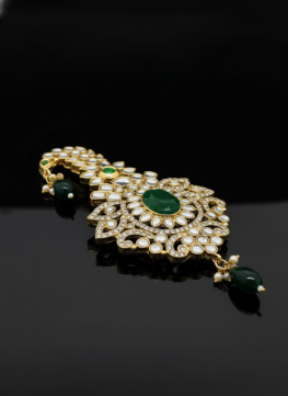 Royal green kundan dulha kalangi with premium pearl drops – perfect for groom sehra. Lightweight, elegant, and handcrafted for a majestic wedding look.